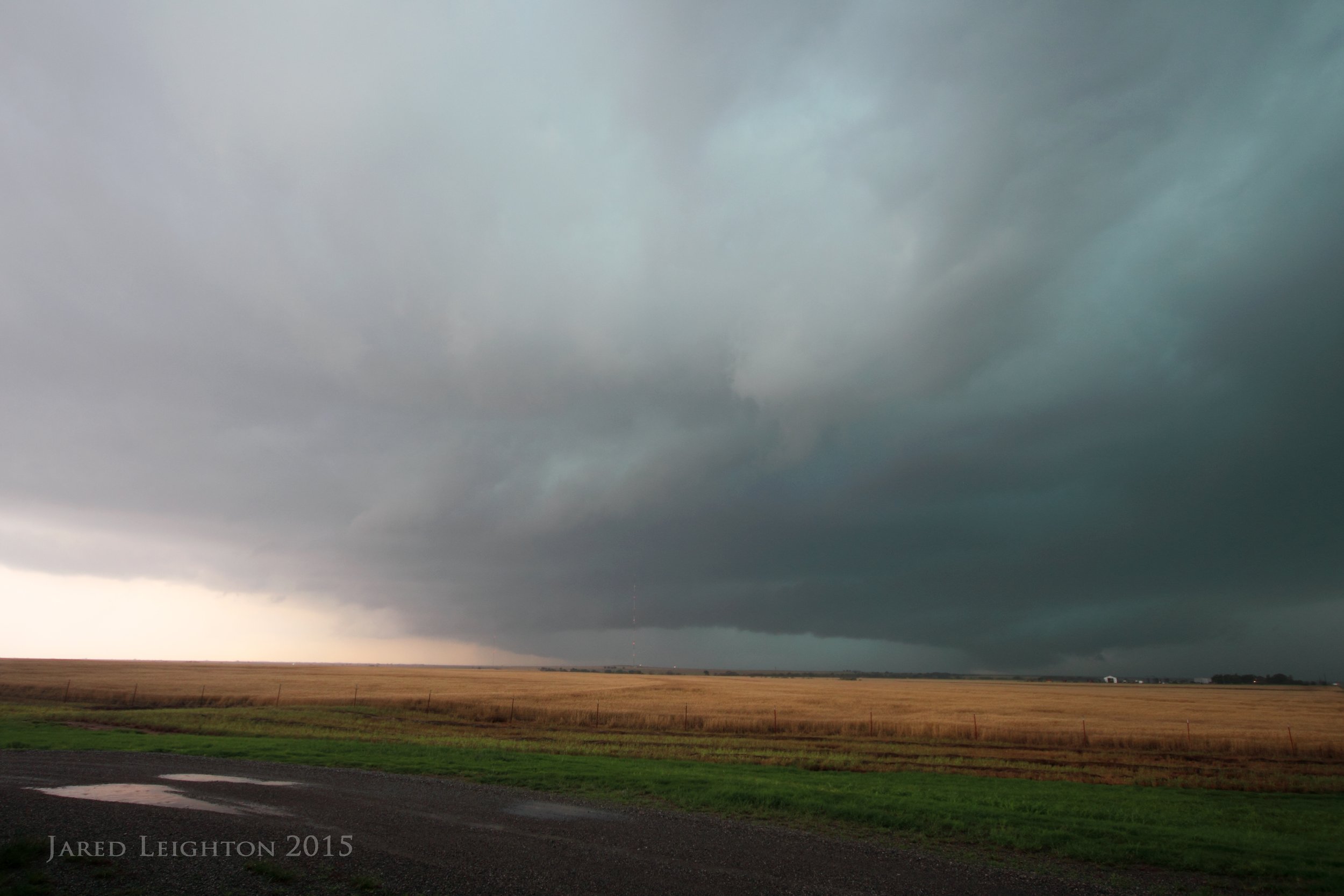 I followed the storm east/northeast until I had to drop into Shamrock to refuel. After refueling I moved north toward Wheeler to get another look at the storm. By this time it had become very HP, and starting to bow out. After getting some good foreground shots between Shamrock and Wheeler, I dropped back to Interstate 40 to begin my long drive home.